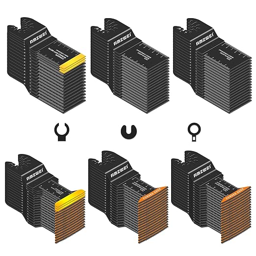 - 【100PCS Oscillating Tool Blades Set】A totally cost-effective tool set including 4 different blades. 6Pcs Titanium blades, 47Pcs curved edge HCS blades and 47Pcs HCS blades, you're equipped for any cutting challenge.