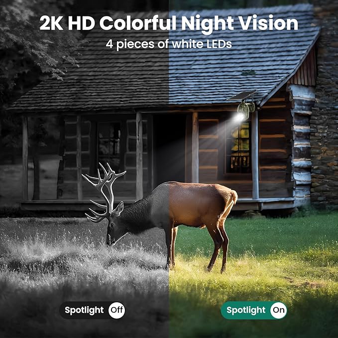 - Instant Motion Detection Alerts & Night Vision: The cameras for home security feature a highly sensitive PIR motion sensor, combined with advanced software pixel analysis technology, to minimize false alarms. With a detection angle of 120°, the security cameras effectively captures all human movements. You'll receive immediate alerts on your phone when motion is detected. Additionally, the motion-activated spotlight provides color night vision, allowing you to see up to 32 feet in the dark.