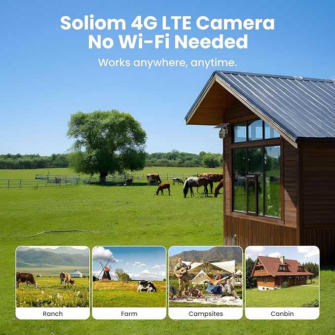 - Easy to Set Up & Flexible Storage: Simply mount the 4G LTE security camera, insert the SIM card and memory card, and scan the QR code using the Soliom+ app to get started! Including a 32GB memory card for local storage (supports up to 128GB) or use the optional Soliom Cloud (30-day cloud trial).