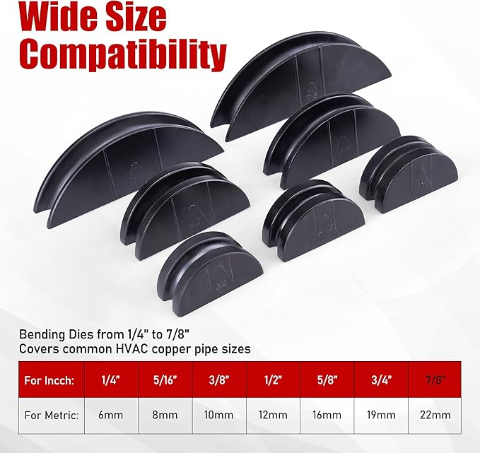 - Wide Size Compatibility: Fits tubing outer diameters from 1/4" to 7/8"; supports wall thickness between 0.6 mm and 2 mm; covers standard HVAC copper tube sizes