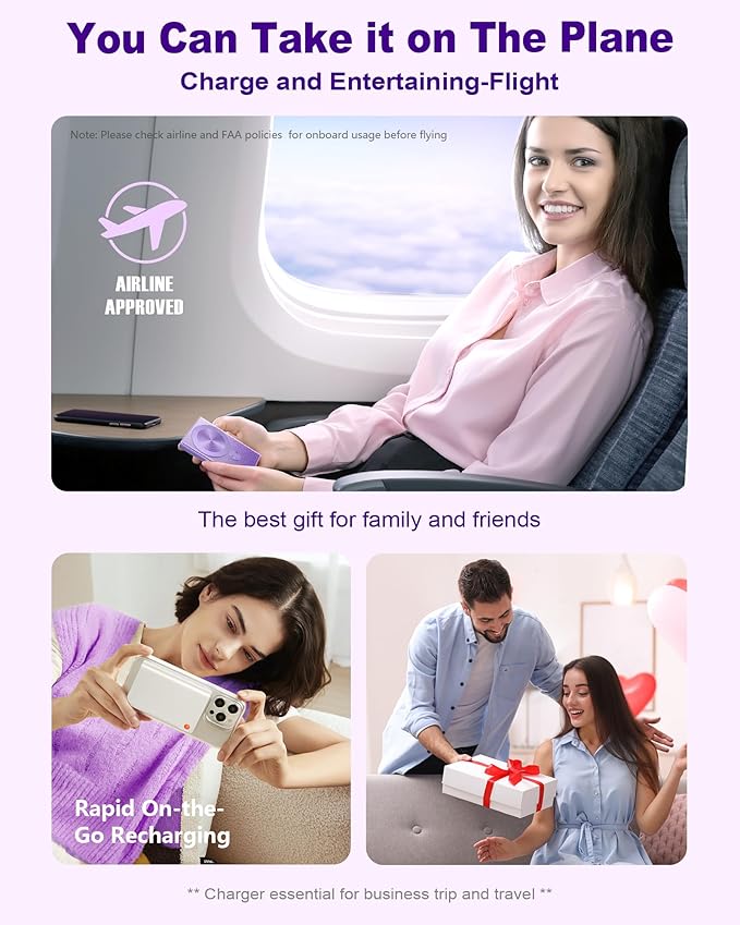 - Certified & Safe Charging: This wireless power bank meets FCC/CE/ROHS/PSE safety standards with 10-layer protection. Features smart temperature control and gentle charging that keeps your devices safe while delivering full power. No overcharging, no damage - just reliable charging every time.