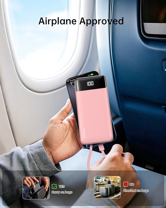 - Airline Approved & Ultimate Travel Companion: Take it anywhere! This 10,000mAh power bank meets all major airline regulations. Its incredibly slim design and built-in cables let it slip effortlessly into your pocket or bag. Perfect for hassle-free power on flights, road trips, or your daily commute. Your essential on-the-go charging solution