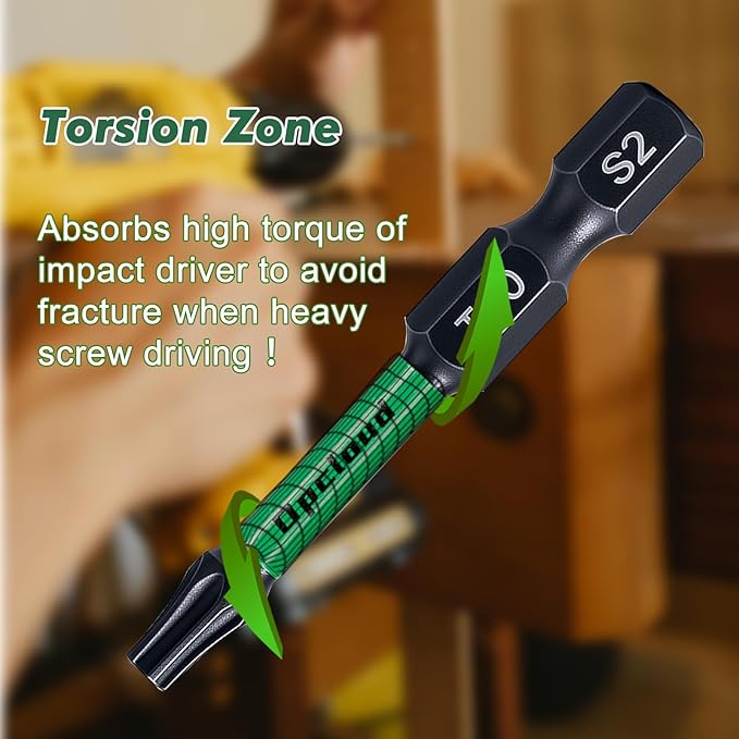 - Impact Rate Bits: Impact Shock Absorbent Zone stands up to impact drivers. It can be handled a new generation of higher torque impact drivers.