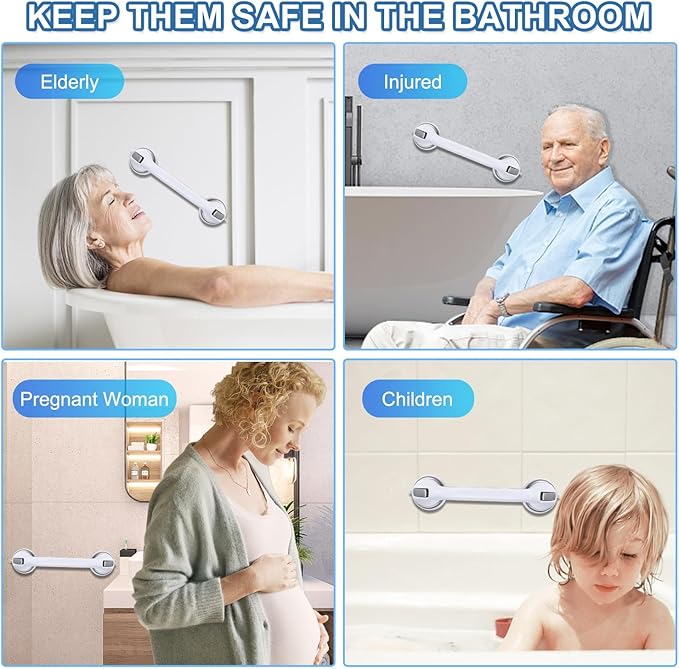 - SAFETY & NON-SLIP: 16 Inch shower grab bars for seniors have comfortable and easy to grip handles. It has a slightly curved design that has enough space for you to easily grab the handle, ensuring non-slip and providing comfortable and safe bathroom protection. The ideal choice for the elderly, injured, pregnant women, or children.