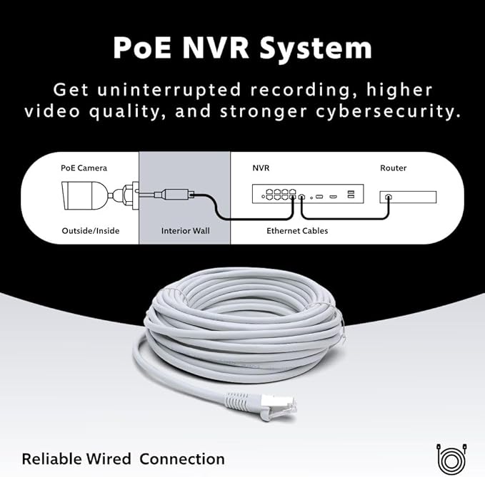 - Reliable 24/7 Wired Surveillance: Enjoy the simplicity of plug-in PoE cameras that draw power from a wired connection to the NVR, offering uninterrupted 24/7 security monitoring without the need for Wi-Fi.