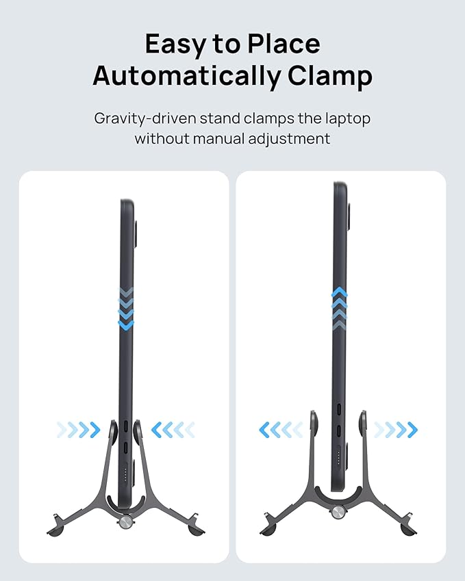 - 【Effortless Gravity Auto-Lock Mechanism】 Say goodbye to fiddly adjustments! Our innovative gravity-activated locking system in this laptop stand vertical ensures quick, secure placement. No tools or complicated setups needed—just slide in your device and let gravity do the work, providing peace of mind and seamless integration into your daily routine.