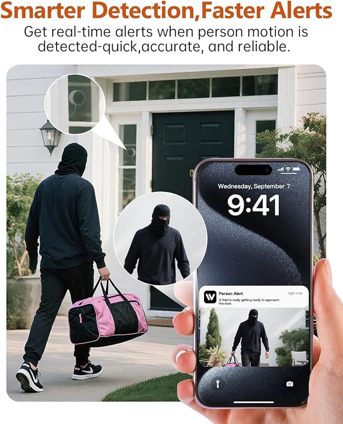 - 【Smart AI That Understands】Situational AI alerts - only notify you when important events occur, do not disturb.Record critical moments as videos and push them to your mobile app, where you can choose to notify 911 with just one click.