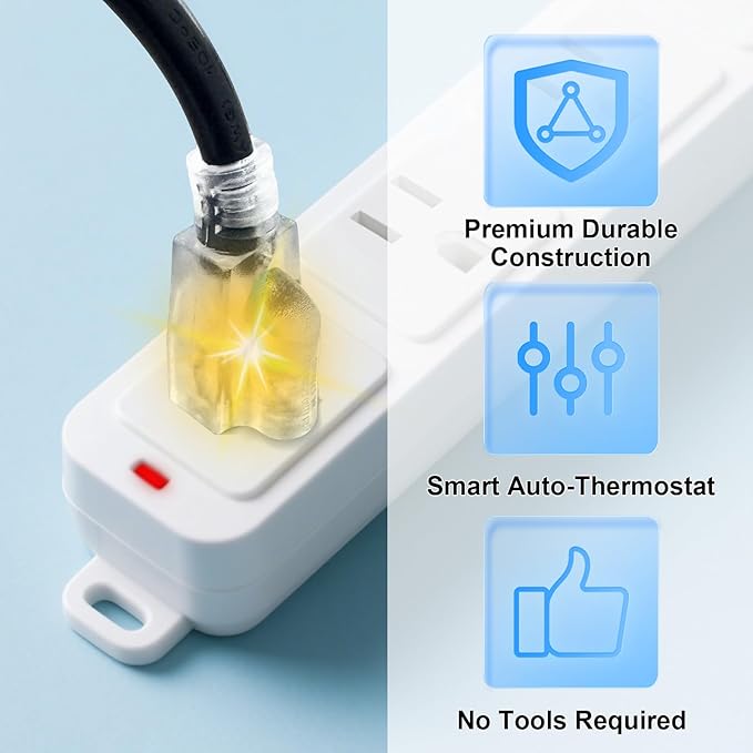 - Temperature Controlled: This 120V 20 inch thermostat plug comes with built-in extension cord and automatically turns on heaters below 37°F and off above 50°F