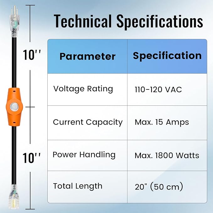 MAXKOSKO 1PC 120V 15A Temperature Controlled Extension Cord, Heat Cable Controller, Thermostatically Controlled Outlet Auto On/Off Below 37°F/Over 50°F, 20" Cord for Covered Outdoor Outlets