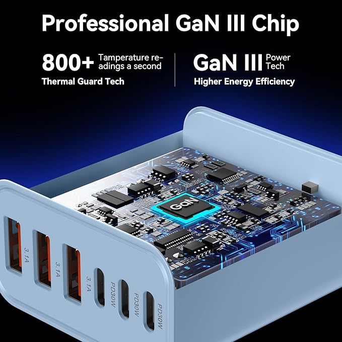 - Military-Grade Safety Assured: Built with advanced GaN tech and fire-resistant ABS+PC materials, this phone charger block features 6-layer protection against overheating/overcharging. The usb fast charger block automatically stops at full charge to preserve battery health, while its stable voltage control prevents damage to sensitive devices like phone or smartwatches.