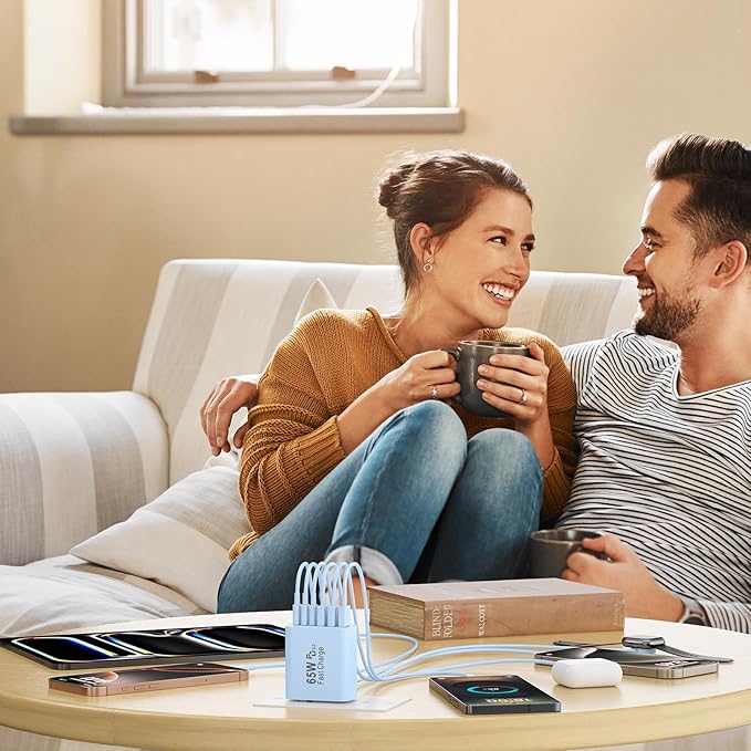- Fast-Speed Charging Block: The charging blocks deliver 65W GaN-powered efficiency with 3 USB-C and 3 USB-A ports. Each usb c charger block supports 30W PPS/PD 3.0 super-fast charging – 68% charge for iPhone 16 or 60% for Galaxy S24 in 30 minutes. Perfect as a fast charging block for flagship devices, outperforming standard 20W charger block models.
