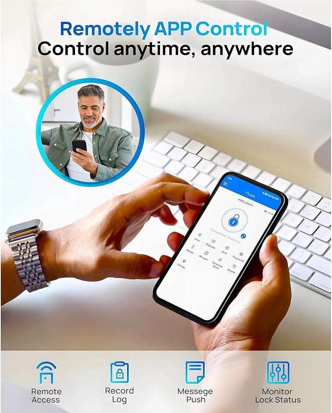 - Remote Management with Real-Time Alerts: Pairing the smart lock with its Wi-Fi Gateway (sold separately) enables full remote control from your smartphone. Lock/unlock, manage access codes, monitor activity logs, and receive real-time notifications about door usage—all at your fingertips