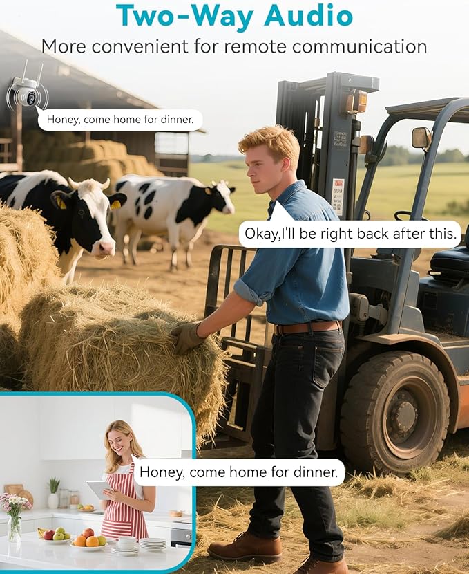 - 【Two-way Voice & intelligent Noise Reduction】: Slice Jelly's security cameras wireless outdoor with built-in microphone and speaker is more convenient and safer, you can realize real-time two-way conversations with visitors who are in the vicinity of the security cameras, and the camera comes with echo cancellation that filters out ambient sounds to ensure clearer communication and audio between you and your visitors