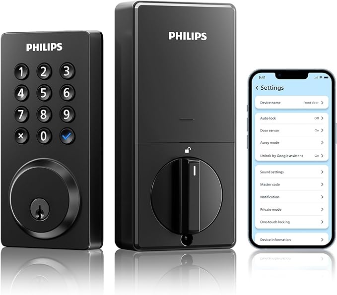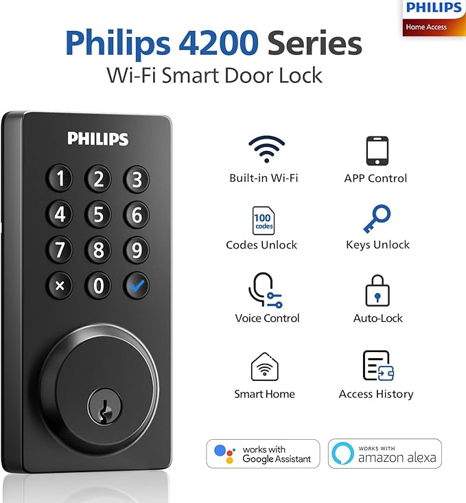 Philips WiFi Smart Door Lock, Smart Locks for Front Door, Keyless Entry Door Lock, Smart Lock Keypad Deadbolt, Buit-in WiFi, APP Remote Access, Compatible with Alexa & Google Assistant, Auto Locking