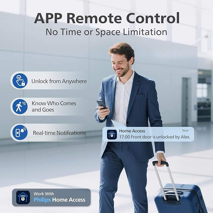 - REAL-TIME ALERTS & ACCESS HISTORY: Get instant notifications when someone locks or unlocks your door. Check the full access log anytime from anywhere.