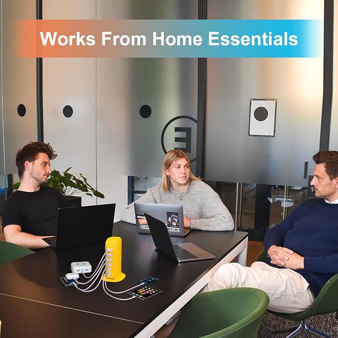 45W USB Charging Station, 6-Port Hub with 4 USB-A & 2 USB-C Ports, 5ft Cable, Yellow