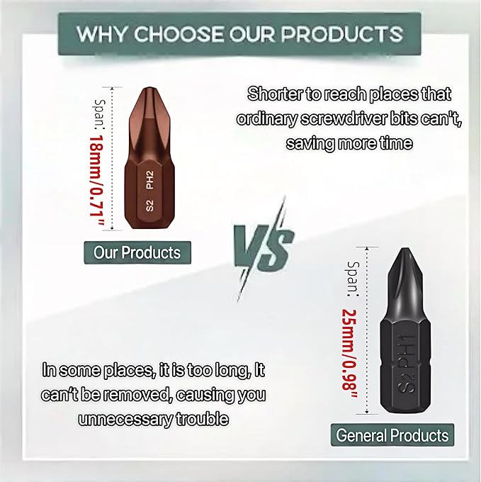 - Original design: the length of this screwdriver bit is only 18mm, shorter than all other models of screwdriver bit, with mini ratchet, more suitable for operation in small or hard to reach space, greatly enhancing the work of the mobility