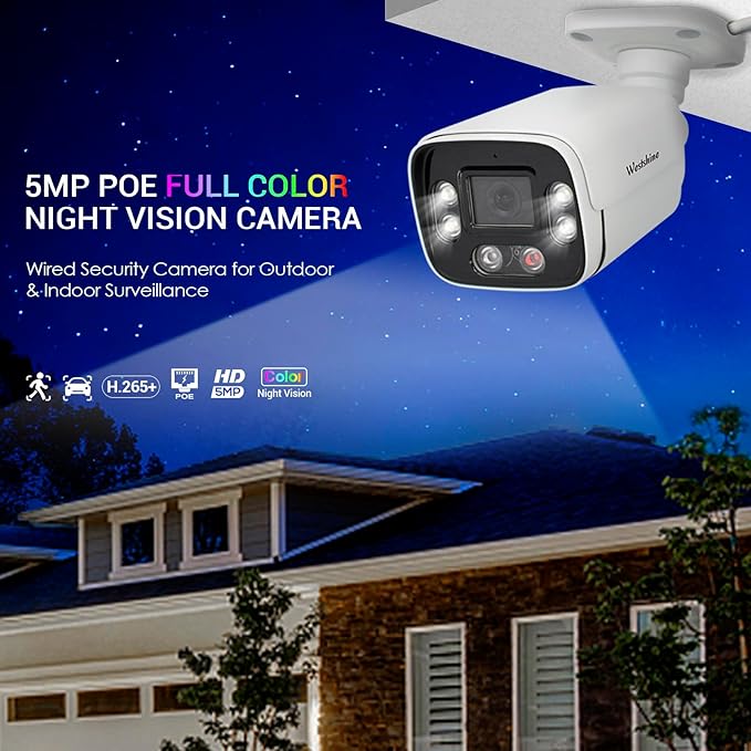 - 【Power Over Ethernet】——This Bullet PoE camera is easy to install and set up. Only one Ethernet cable is needed for power, video, and audio transmission. You can connect the camera to an NVR for convenient management. Support ON-VIF, compatible with WESTSHINE NVRs and most third-party brand NVRs (We recommend this product for use with Westshine NVR, search ASIN: B0FCF5MJ7K/B0FCF297B7).