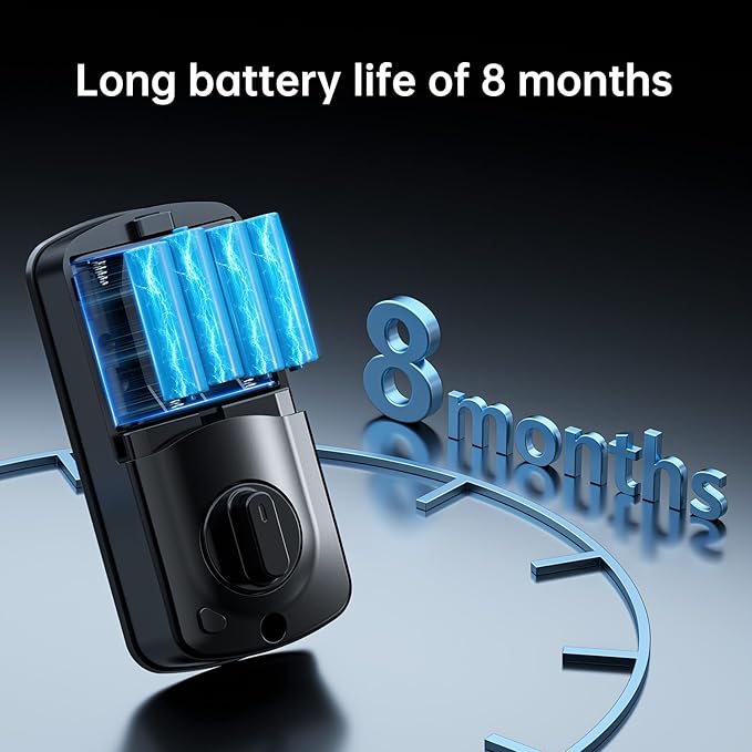 - Durable and Long-lasting: The Smart door lock is powered with 4 AA batteries (not included) that can last up to 8 months. Additionally, it comes with a low battery warning system, so you'll have plenty of time to replace the batteries before it's too late. Perfect for any location, whether it's your office or the front door of your house.
