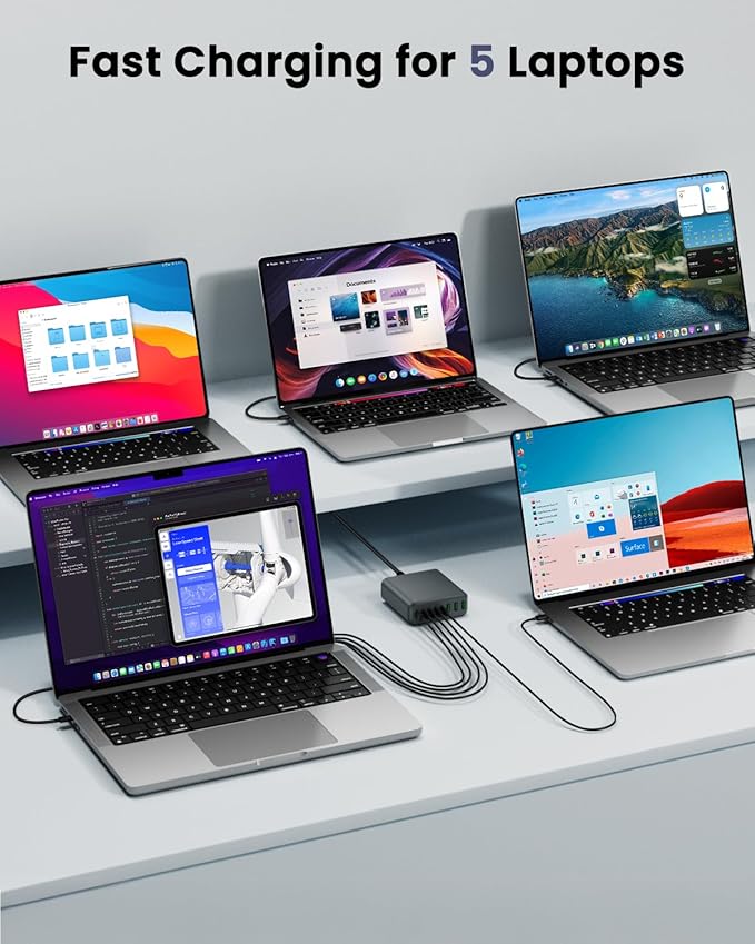- 【Super Fast 500W Output USB C Charger】: Experience the convenience of super fast and ultra-high output charging with this 500W desktop charger, featuring 5 USB-C and 3 USB-A ports to power up your essentials simultaneously. No need for more adapters, you can use just one outlet to plug in laptops, tablets, smartphones, Bluetooth speakers and other small gadgets like earbuds, smartwatches, game consoles etc.