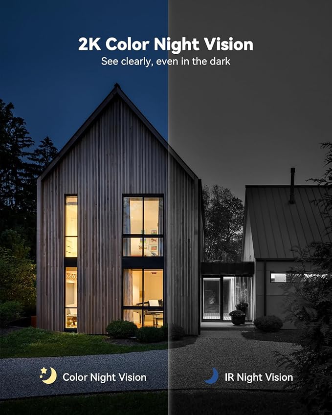 - 【Smart Detection + Night Vision + Weatherproofing for All-Day Security】Smart 24/7 Protection: Motion detection triggers instant alerts & recording, while 15m night vision ensures clear footage in darkness. IP66-rated to withstand rain, dust, and -20°C~60°C temperatures for reliable outdoor performance.