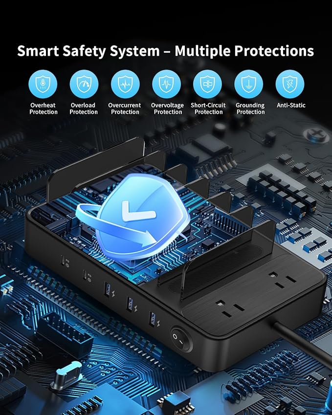 85W Charging Station for Multiple Devices, 7-in-1 Power Strip with 2 AC, 2 USB C, 3 USB A, USB C Charging Hub for MacBook, iPhone, Android & More, USB Desk Charger, Black