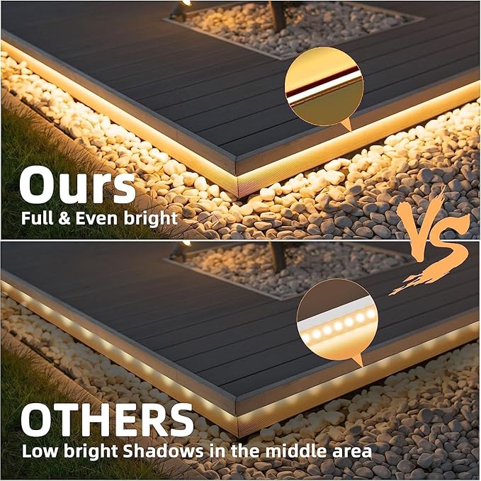 - 【3000K Warm White】- The neon rope lights include 1200 super bright warm white LEDs with 24V working voltage and 3000K Color Temperature. Upgraded LED and side-brightness design make LED strip lights shine brighter than others, 120 degrees projection range offers large Illumination coverage, and the light is very even down the strip.