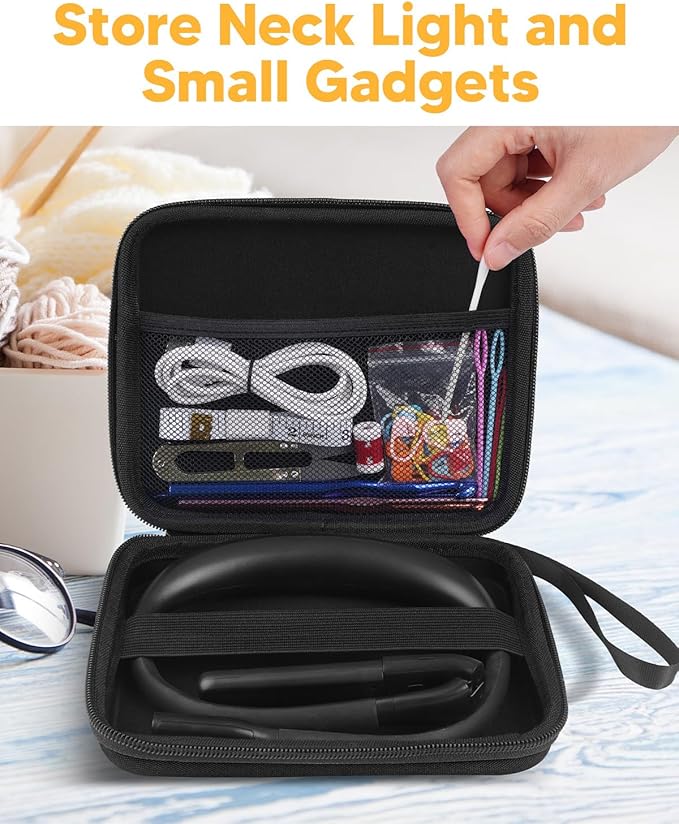 Book Light with EVA Case: Rechargeable Eye Caring 3 Color Dimmable Neck Reading Light, Bendable Neck Lamp with Power Display, Reading Lamp Knitting Crochet Accessories Neck Lights for Crafts