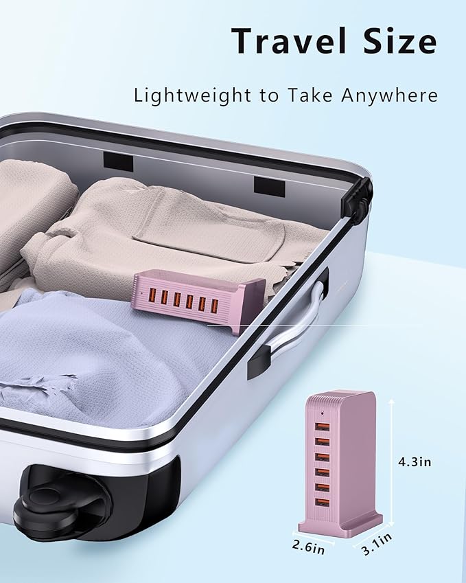 Charging Station for Multiple Devices,VPSUN 50W USB Charger Tower,Multi 6 Port USB Charging Hub Compatible with iPhone 15/14/14 Pro/14 Pro Max/Android/Samsung/Tablet,etc(Pink, 50W)
