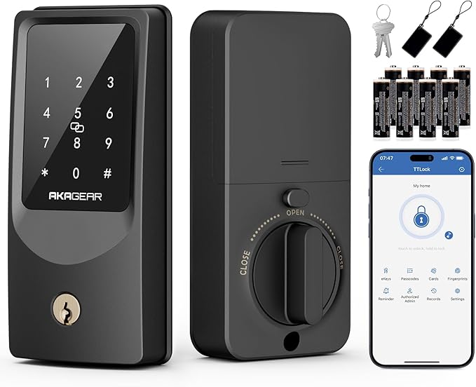 - Control Your Door Anytime, Anywhere: Keep full control of your door from anywhere. Using AKAGEAR T02 mini Wi-Fi smart lock and TT APP, you can lock, unlock, and check door status in real time. Receive real-time notifications, review entry logs, and assign customizable access for family members or visitors—all from your smartphone.