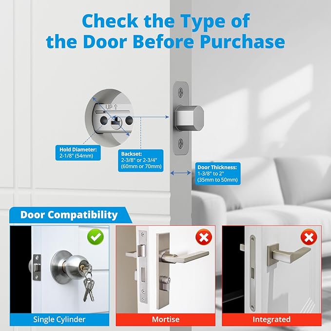 - Fits Most Standard Doors: Engineered for straightforward installation on doors ranging from 1-3/8" to 2" thick. No need for a handyman! Install in minutes with just a screwdriver. It fits all standard US single cylinder doors without complicated adjustments, making it a hassle-free upgrade to your home security.