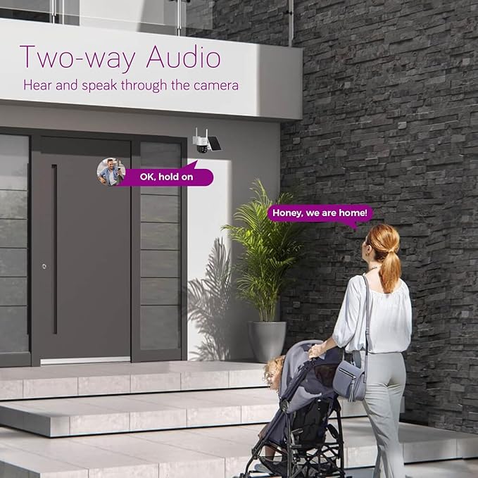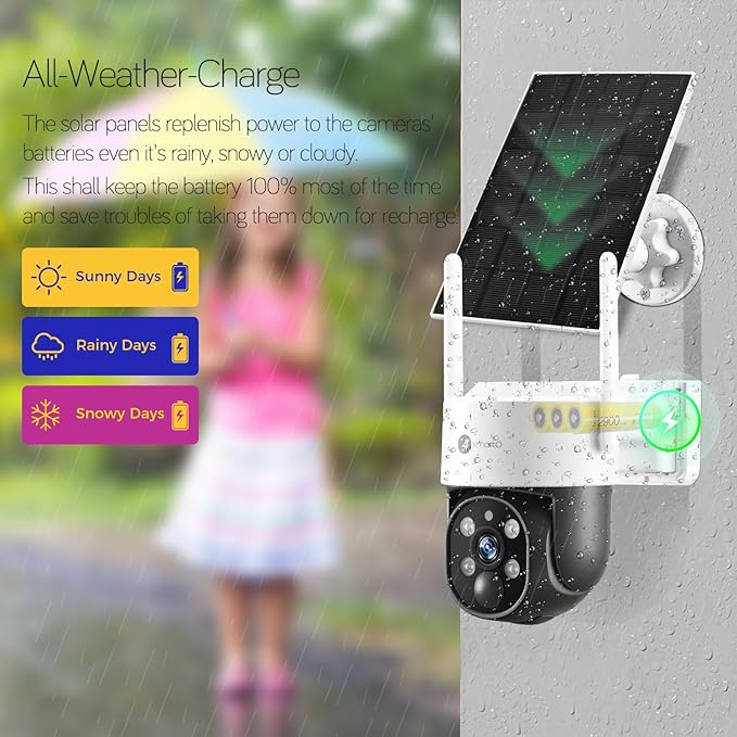 - 【Wire-free Easy-setup Solar Cameras】The cameras are powered with TESLA-type automotive-grade rechargeable batteries and solar panels. It's easy to install the cameras anywhere indoor and outdoor. No cable needed.