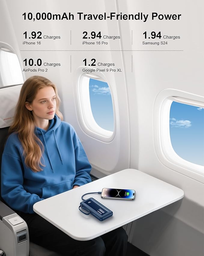 - Safe and Secure Powerbank:This portable battery charger is built with premium cells and 10-layer safety protection to guard against overcharging, short circuits, and other potential risks—giving you peace of mind with every use. It also features a built-in LED flashlight to light up the night whenever you need it