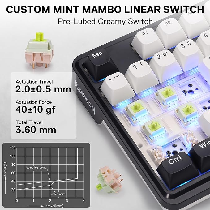 - Custom Mint Mambo Switch - With thick-lubed custom linear switches combo with a gasket form factor, K689 PRO features cushioned rich linear travel with silky creamy and cozy typing feedback. The brand new upgraded socket is nearly all switches(3/5 pins) compatible
