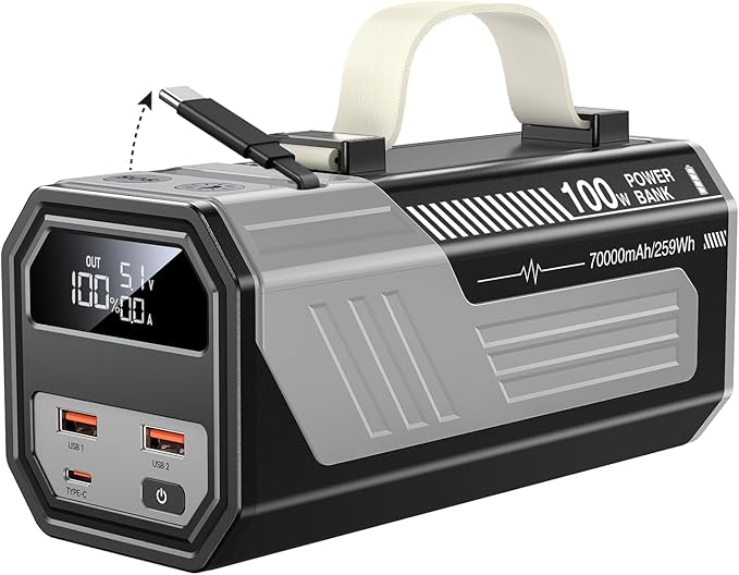 - 100W Fast Input:This high-capacity power bank supports 100W fast input via the USB-C port and 60W fast input via the built-in USB-C cable, solving the problem of long charging times for large batteries. So even a 70,000mAh high capacity portable charger can be fully recharged in hours