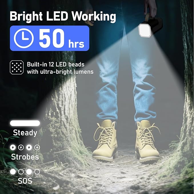 - Ultra-Bright LED Flashlight with SOS:Featuring 12 ultra-bright LED beads with adjustable brightness and SOS mode, this LED flashlight power bank is perfect for camping, hiking, night work, or emergencies.