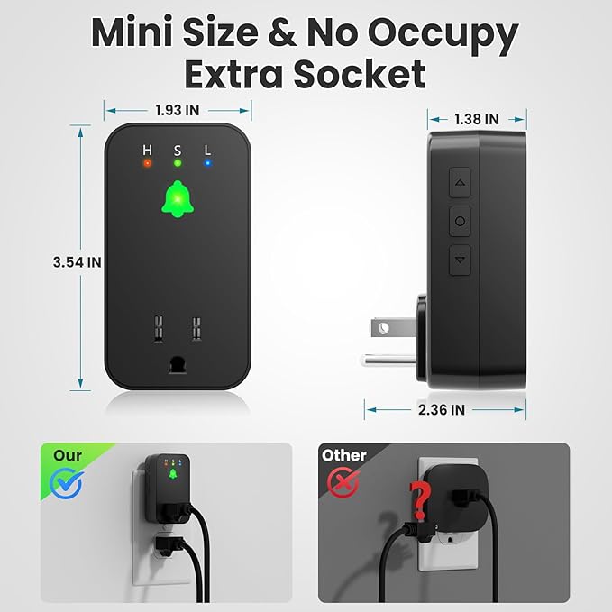 - MINI SIZE & EXTENDED SOCKET: Upgraded and optimized exquisite mini appearance ensures it doesn't occupy other outlets, and the device also offers another extended socket on its surface for other household electrical, there is enough space for multiple appliances to be connected simultaneously to use