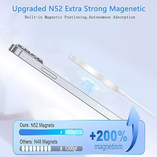 - [Strong Magnetic Wireless Charger]The Apple Mag-safe charger is equipped with an upgraded magnet that automatically aligns and locks onto your iPhone, securely holding it in place even when you're texting, scrolling, or playing games. 360 ° charging support allows you to power your device in any direction without interruption, achieving maximum power transfer