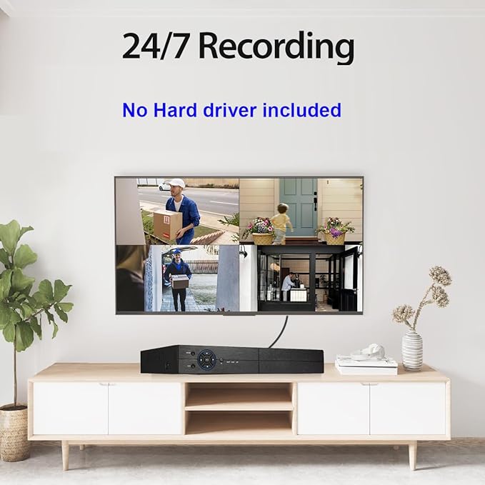 - 【No Hard Drive Included】Please note the system ships without a hard drive. You’ll need to install a 500GB–2TB 3.5-inch SATA hard drive for video storage. This allows flexibility to choose storage capacity based on recording needs, whether for short-term monitoring or extended footage retention. Simply insert the HDD into the DVR’s compatible bay to start recording—no extra tools required for installation.
