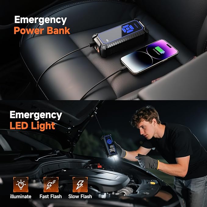 - [Ultra‑Large Display & Auto Shut‑Off] Features a bright dual LED screen and high-precision pressure sensor for real-time monitoring of current and target PSI. The auto shut-off function stops inflation exactly at your preset level (e.g., 30 to 35 PSI), helping prevent over-inflation and ensuring safer tire pressure every time.