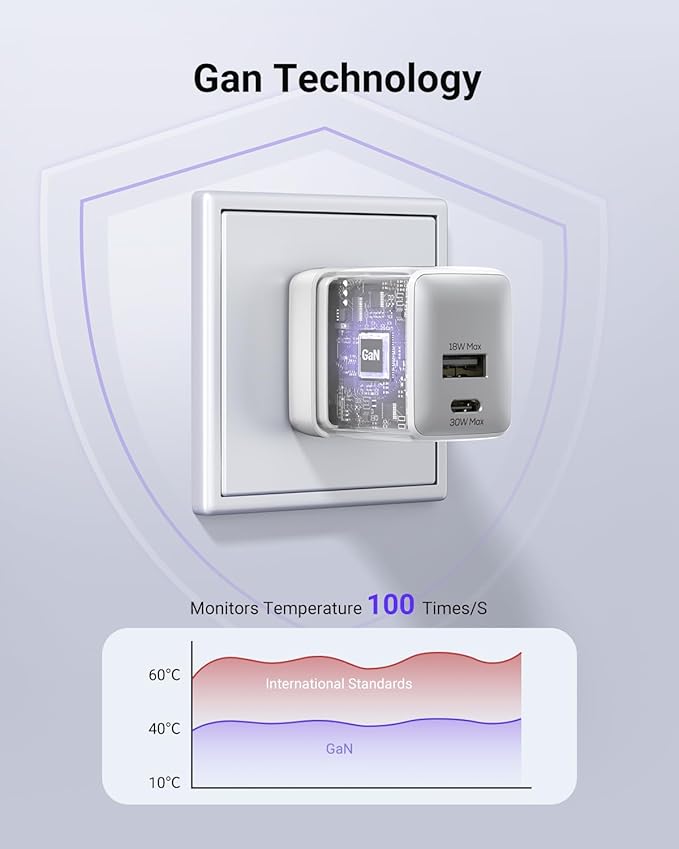 - 【GaN Safety Assurance】Incorporates GaN chip and intelligent temperature control technology to effectively reduce heat generation, ensuring safety during charging
