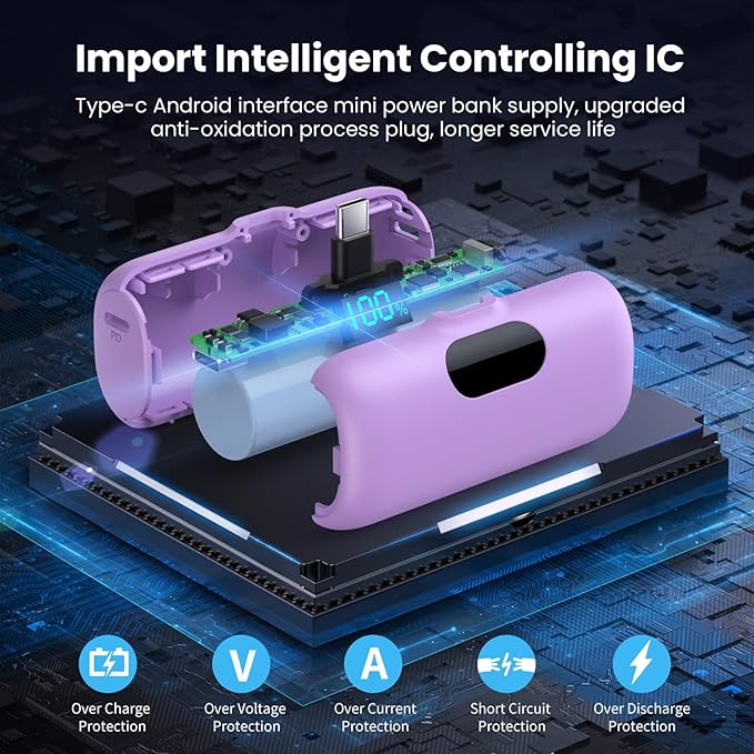 - 【Power Bank with Intelligent Protection】This portable charger is equipped with a smart control IC chip that provides built-in overcharge, overvoltage, overcurrent, and short-circuit protection, ensuring that your smartphone’s battery remains safe during the entire charging process. You can enjoy peace of mind knowing that your device is protected.