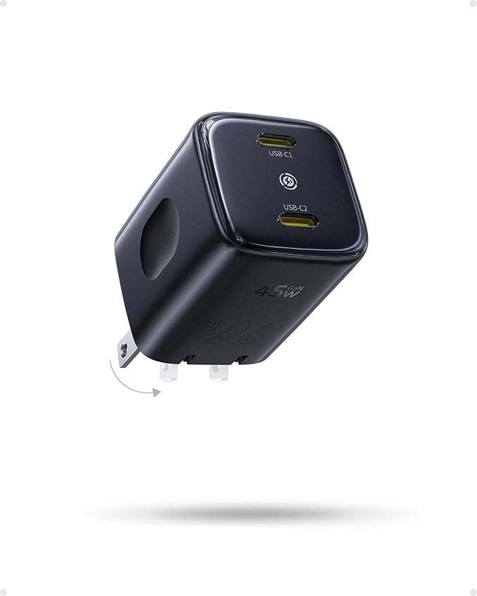 - Smaller Size, Greater Portability: Adopting high-density integrated design, this fast charger has a volume 47% smaller than traditional 45W chargers, making it easily fit into pockets or carry-on bags. And it won't block or interrupt adjacent sockets. The foldable pin saves space and will not scratch other items when stored together. It's an ideal power companion for business trips.