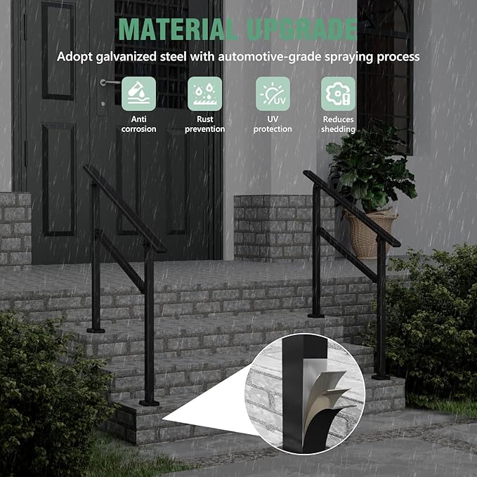- Safe and Sturdy: Crafted from heavy-duty steel, our outdoor step handrails are rigorously tested to support up to 600 lbs. The thickened grip and rounded edge design ensure comfort and safety for everyone, including pregnant women, children, and the elderly, providing peace of mind with every use.