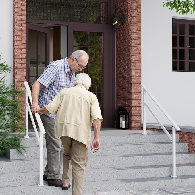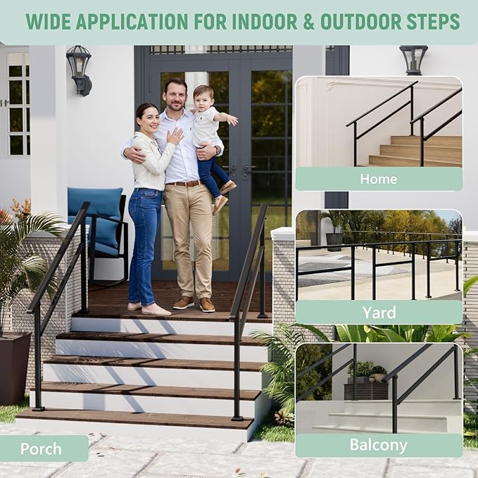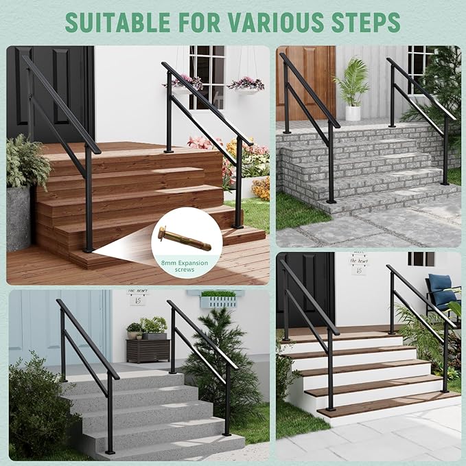 - Wide Application: Suitable for concrete, wood, tile, marble, and other solid surfaces, this outdoor step handrail is ideal for patios, balconies, porches, gardens, residential buildings, hotels, garages, and more. It enhances safety and accessibility wherever needed.