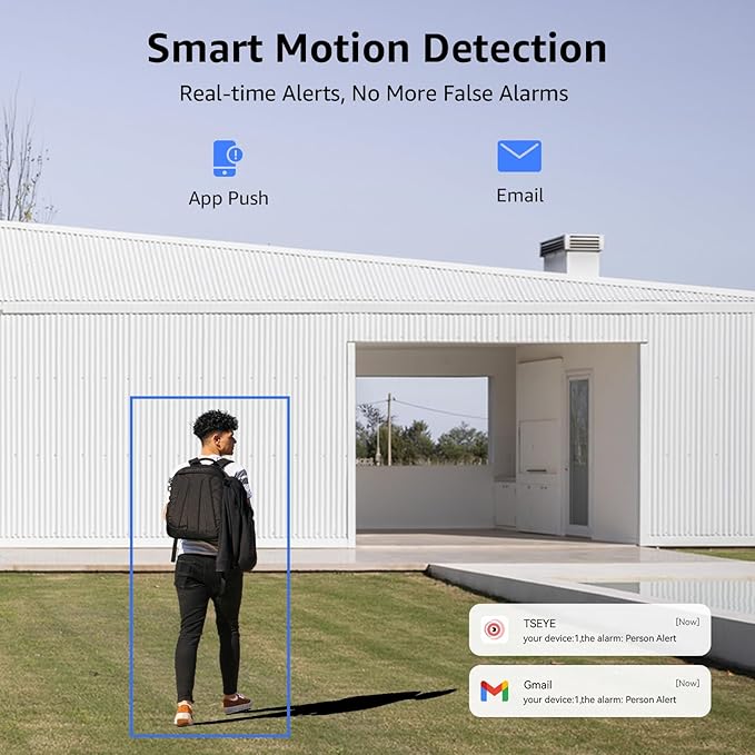 - Smart Motion Detection: This security camera system intelligently detects people, reducing false alarms caused by environmental factors. With customizable alerts, the CCTV system sends instant notifications for specific security events, enabling prompt responses and providing enhanced surveillance protection