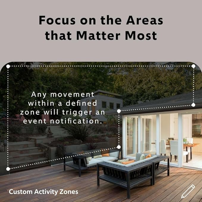 - Customizable Detection Zones: Set motion detection zones and adjust sensitivity levels to monitor high-priority areas like doorways, driveways, or retail spaces reducing unnecessary alerts and improving response time.