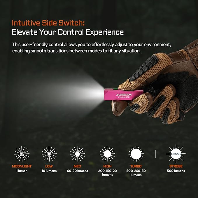- Everyday Carry and Emergency Flashlight: The Keylite 500 is a great gift choice for family and friends, it's perfect for everyday use, like dog walking, camping, hiking and emergency