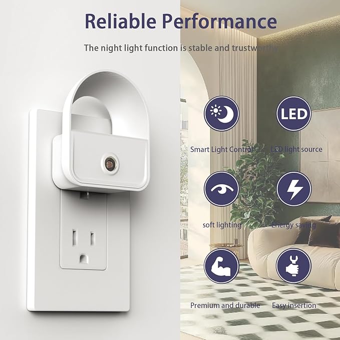 - SAFE AND RELIABLE: Small size, won't cover up other sockets, Constructed with durable materials and equipped with overload protection, this night light ensures safe and worry-free operation.
