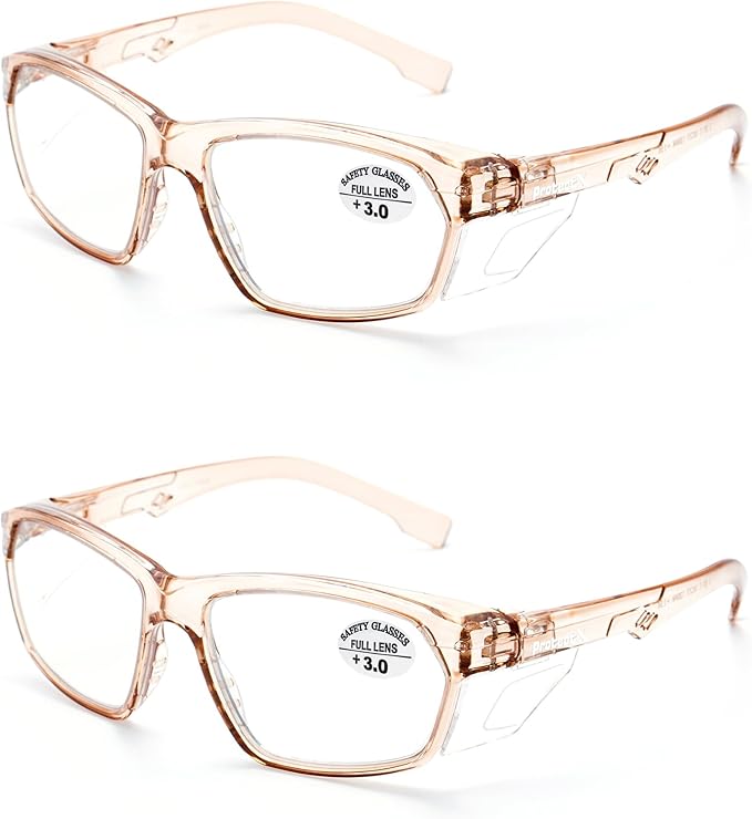 ProtectX Stylish Anti-Fog & Scratch-Resistant Safety Glasses With Readers, UV Protection Goggles, Anti-Impact Lightweight Glasses for Men&Women Cold Brew Reading 3.0-2 Pack